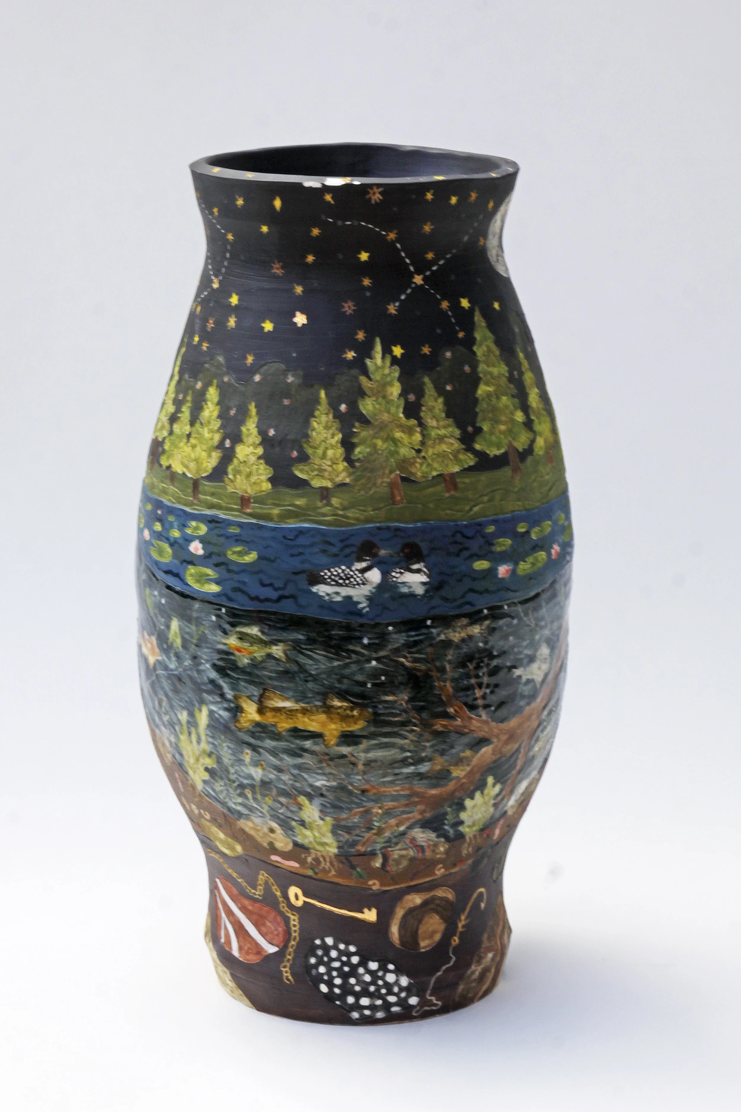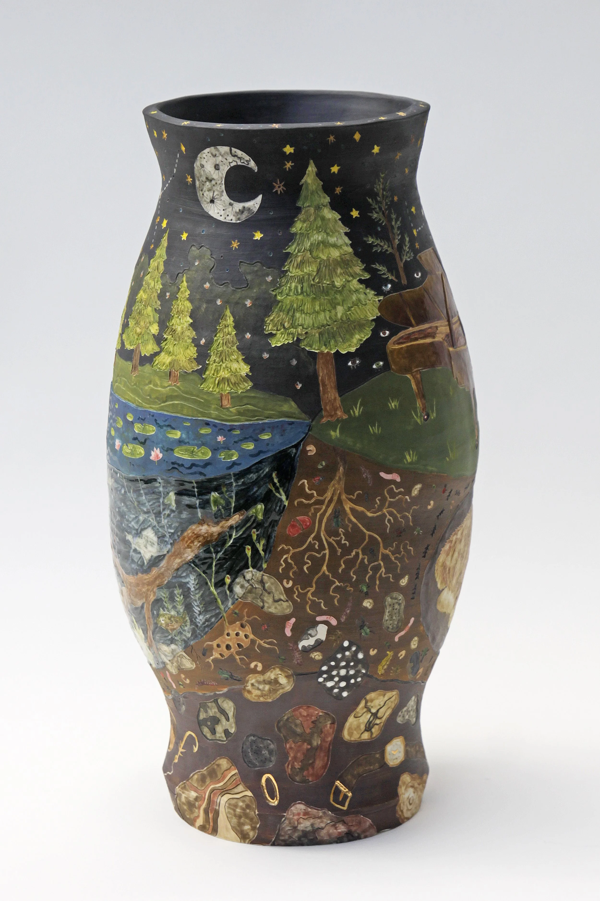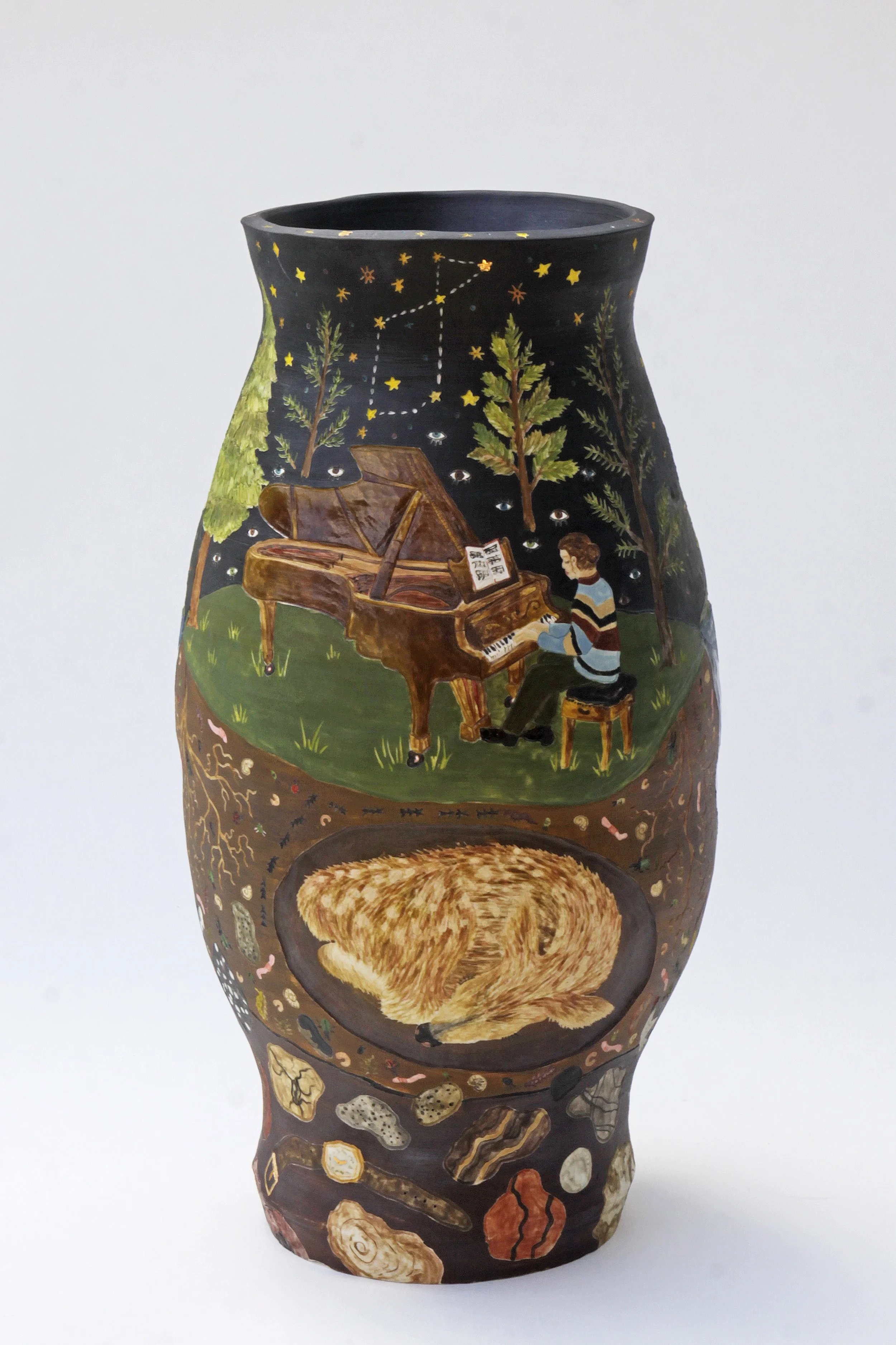 Moonlight Sonata, 2023, 12x6x6 in, porcelain, underglaze, and 24k gold accents